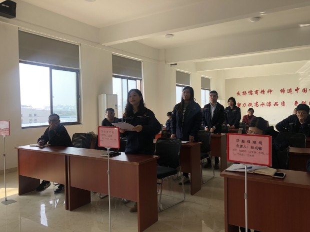 下午由安環(huán)部安全員段本洋主持培訓,培訓主要是讓大家熟悉了解應急預案的目的、流程、架構,明確自己所在崗位的職責,提高危機意識和責任意識,掌握現(xiàn)場應急知識和技能。公司董事長江孝林為應急預案總指揮,此次預案共設五個小組,現(xiàn)場各小組負責人分別向總指揮匯報小組職責并點名簽到。最后,董事長江孝林要求會后各小組負責人繼續(xù)討論具體實施方案。