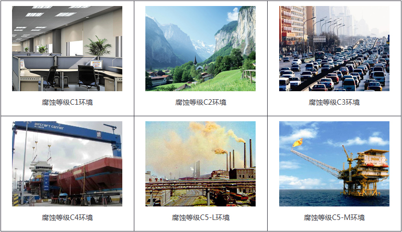 | C4 | 高 | 高鹽度的工業(yè)區(qū)和沿海區(qū)域 | 化工廠、游泳池、海船和船廠等 |